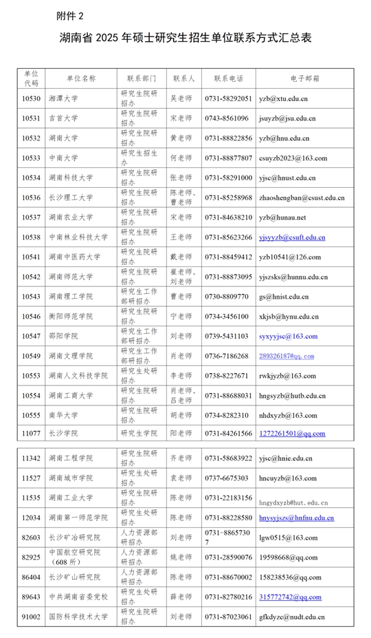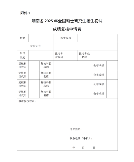 2.申請方式:考生如實填寫《湖南省2025年碩士研究生招生初試成績復核申請表》(見附件1),簽字確認后拍照,與本人身份證照片一并作為附件,通過電子郵件的方式發(fā)送到有關(guān)招生單位(見附件2)。成績復核結(jié)果可在3月7日后向報考的招生單位查詢。