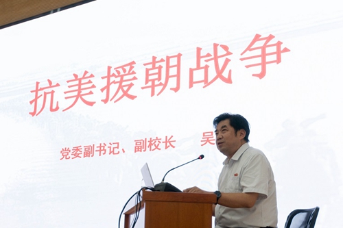 7月13日晚,西安汽車職業大學黨委副書記、副校長吳毅在渭水廳做題為《抗美援朝戰爭》的主題黨課,各學院300多名學生黨員以及入黨積極分子參加了本次黨課學習。