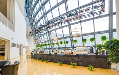 學(xué)校圖書館建筑面積2.84萬平方米,館藏紙質(zhì)、電子圖書共270萬冊(cè),中外文數(shù)據(jù)庫、數(shù)字化文獻(xiàn)資源豐富,閱覽席位2400個(gè),滿足學(xué)生日常閱讀、研究和論文撰寫需求。