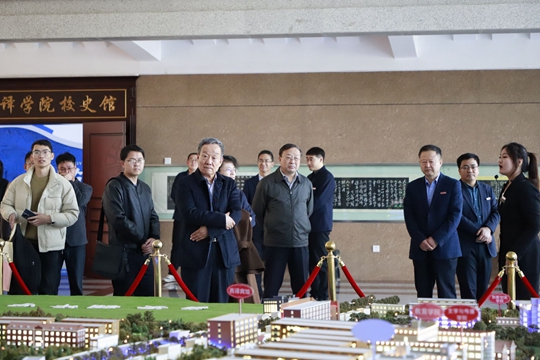 狄俊安一行在樊相宇等人的陪同下先后參觀了西安翻譯學院沙盤、校史館等地。通過實地參觀,進一步了解了學校的發展歷程、辦學特色和辦學成果等情況。