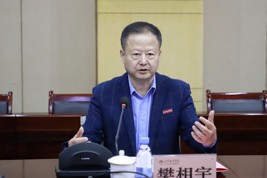 樊相宇致歡迎辭。他首先代表西譯對狄俊安一行的到來表示熱烈歡迎,并詳細介紹了學校辦學理念、人才培養模式、專業特色等方面的情況。他指出,近年來,西譯持續深化教育教學改革,始終堅持以學生為中心、以立德樹人為根本任務、以產出為導向的教育理念,并通過增加教學資源投入、加強多領域人才引進、提高中青年教師學歷、完善教師結構體系等措施,切實推進了學校教育教學質量和水平的提升。樊相宇表示,在學校審核評估評建工作中,要重視頂層設計、理解指標內涵,合理進行內部結構設計;要多方論證并制定優化提升方案,通過對規模、結構、質量、效益的量化模型分析,全力推進學校內涵化發展和高質量發展。他希望,通過經驗交流和理念分享,能夠促進兩校取長補短、相互學習,促進雙方共同發展和進步。