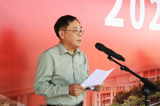 劉洊波作軍訓動員講話。他指出,今年是中國人民抗日戰爭暨世界反法西斯戰爭勝利80周年。80年前,無數先輩用血肉之軀筑起民族長城。“今天,我們身處的和平校園,正是那段歲月的饋贈。軍訓是同學們銘記歷史、傳承偉大抗戰精神的課堂。”他希望同學們要深刻領會軍訓的意義,不僅要學習軍事技能,更要深刻體會軍人的奉獻精神、家國情懷,把軍訓當作磨練意志、提升自我的寶貴機會,在訓練中思考和成長,在體驗中感悟責任,真正做到“訓有所獲,念有所得”。要嚴格遵守軍訓紀律,時刻以軍人的標準嚴格要求自己,服從教官指揮,不折不扣完成每一項訓練任務。尊重老師,尊重同學,在團隊協作中學會互助和包容,敢于挑戰自我、超越自我,用昂揚的斗志展現廣州城理學子的青春風采。要始終繃緊安全之弦,牢固樹立安全第一的思想,訓練前要熱身,身體不適及時報告。