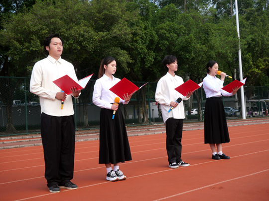 今年是新中國成立76周年,也是中國人民抗日戰爭暨世界反法西斯戰爭勝利80周年,學生藝術團司儀隊激昂地朗誦《民族豐碑》“我仰起頭,向著遠去的戰爭凝望……”,引領廣大師生共同銘記歷史、緬懷先烈、珍愛和平、開創未來。