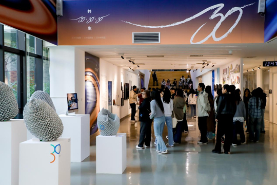 三十而立,向新而行。在西安歐亞學院建校三十周年之際,艾德藝術(shù)設計學院以“30組師生,30件作品,30個故事”為脈絡,集結(jié)分院全體師生共創(chuàng)之力,呈現(xiàn)這場名為《共生:30×30×30》的跨越學科邊界、融匯藝術(shù)與技術(shù)的多元展覽。展出作品以“和而不同”為精神內(nèi)核,以“做平凡世界的一束光”為初衷,既是對學院“以雇主為導向,以學生為中心”教育理念的立體詮釋,亦是對數(shù)字時代藝術(shù)設計教育創(chuàng)新實踐的不斷追問與回應。