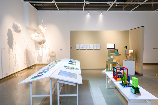 三秩春秋,艾德在藝術(shù)設計教育的旅途中,不斷追問藝術(shù)與科技、傳統(tǒng)與未來的共生路徑,并創(chuàng)造出屬于EAaD的創(chuàng)新教育范本。此次展覽中,平面設計以視覺敘事重構(gòu)校園記憶,交互裝置以代碼編織人文溫度,數(shù)字藝術(shù)以虛實交織探討可持續(xù)校園——每一件作品皆是師生對“技術(shù)賦能創(chuàng)意”的躬身實踐,亦是對“社會問題導向”設計思維的鮮活注解。