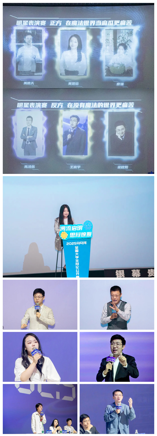 “魔法”與“現實”的思辨狂歡!備受期待的明星表演賽燃爆賽事頒獎典禮現場。在辯論主席張琪清亮的主持聲中,全場燈光聚焦舞臺中央——席瑞、禹皓天、黃思晗三位從容地組成正方陣營;而陳凌岳、王宸宇、梁秋陽則以沉穩的姿態落座反方。當辯論主席念出 “在魔法世界當麻瓜更痛苦/在沒有魔法的世界更痛苦” 這一充滿奇幻色彩又暗藏現實隱喻的辯題時,臺下700余名觀眾瞬間屏息,這場提前憑借“神仙陣容 + 趣味辯題”鎖定超高關注度的思想盛宴,讓全場觀眾沉浸于這40分鐘的“思維過山車”中,忘卻了時間流逝,只余下心跳與辯手的話語同頻共振。