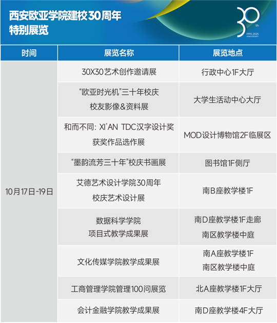 圍繞建校30周年慶典,西安歐亞學院將以“慶祝、致敬、啟新”為核心脈絡,陸續推出一系列內涵深刻、形式多樣的慶祝活動。系列活動由四大精彩版塊構成,分別涵蓋藝術盛典、校園新地標啟用、教育教學與學術成果展示,以及校友與社會的深度互動。在全校各二級學院與職能部門的協同共創下,這些活動將不僅呈現歐亞在教育、科研、社會服務與文化傳承等領域的多元成就,更彰顯30年來歐亞人向光而行的精神與力量。