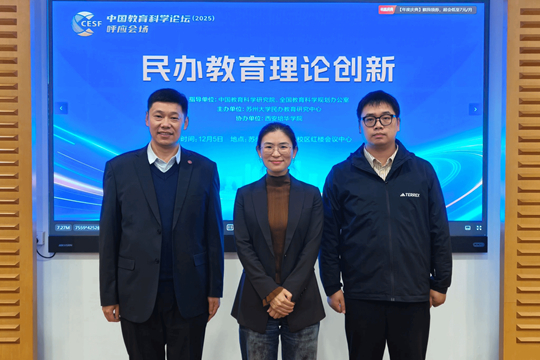 2025年12月5日,由中國教育科學研究院、全國教育科學規劃辦公室指導,蘇州大學民辦教育研究中心與西安培華學院聯合舉辦的“中國教育學知識體系構建視閾下的民辦教育理論創新研討會”在蘇州大學天賜莊校區順利舉行。本次會議匯聚了國內民辦教育研究領域的知名學者與專家,圍繞新時代民辦教育高質量發展的理論創新與實踐路徑展開深入交流與研討。學校黨委副書記蔡亮、馬克思主義學院青年教師王朋參加現場會議。