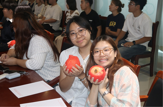 培華師生向新加坡交流學生贈送新鮮石榴,祝福兩校緊密聯系,合作交流結出豐碩成果。