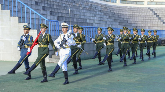 上午7時,儀式正式啟動。第一項為升國旗、奏唱國歌。全體師生肅立,國旗護(hù)衛(wèi)隊邁著整齊有力的步伐出旗。在激昂的國歌聲中,五星紅旗冉冉升起,全體人員行注目禮,目光追隨著國旗直至頂端,現(xiàn)場氛圍莊嚴(yán)而肅穆。