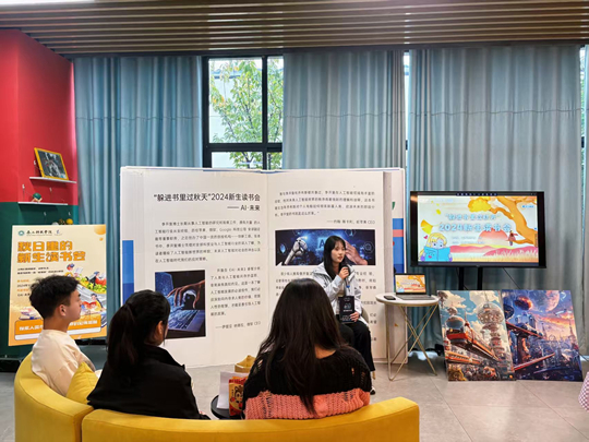此外,校園經(jīng)典閱讀寫作工程圍繞“閱讀活動×課程融入×社會服務(wù)×師生成果”導(dǎo)向,構(gòu)建全方位閱讀與寫作能力提升行動體系。通過設(shè)置“通識+商科”支點(diǎn)閱讀計劃,將通識、商科課程與閱讀書目對接,形成了48門完備的經(jīng)典閱讀寫作課堂領(lǐng)讀體系,引導(dǎo)學(xué)生“上完一門課讀完一本書”,形成“教師學(xué)期首課課堂推薦導(dǎo)讀+書目日常課堂融入+學(xué)生期末讀書報告分享”的課堂領(lǐng)讀體系。通過相關(guān)活動組織和項(xiàng)目建設(shè),探索設(shè)置閱讀主題月、小泰有聲書、閱讀分享會等創(chuàng)新舉措,引導(dǎo)學(xué)生深度參與閱讀,構(gòu)建“師生共讀、教學(xué)相長”的閱讀生態(tài)。