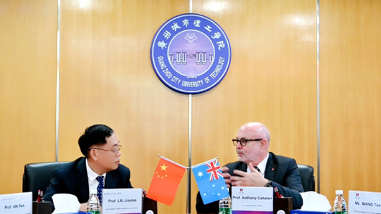 Anthony Cahalan對廣州城市理工學院的熱情接待表示感謝,并介紹了麥考瑞大學的辦學優勢。他指出,麥考瑞大學已躋身全球前1%大學的行列,且近年來在各類世界大學排名中呈現不斷上升的良好勢頭;麥考瑞大學以應用型教學與研究為辦學特色,注重培養學生的實踐應用能力,校園設施完善,多元的文化氛圍對學生非常友好。他表示:“麥考瑞大學致力于在全球尋求理念相似的院校建立合作關系,廣州城市理工學院與麥考瑞大學在培養高素質應用型人才、積極開展國際合作等方面非常吻合,期待兩校共同推進合作。”