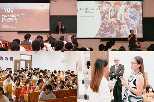簽約儀式結束后,麥考瑞大學代表團面向管理學院、經濟學院及國際商學院學生舉辦本碩連讀項目宣講會,詳細解讀赴麥考瑞大學留學的優勢。王桃以“你好澳大利亞——打開國際視野的第一步”為主題,圍繞澳中緊密的經貿與教育關系,激勵學生通過出國留學拓寬全球視野、實現學術與職業更高層次的發展。蔣婷婷則重點介紹了麥考瑞大學商學院,向學生展示麥考瑞大學的學術優勢與學習體驗:麥考瑞商學院是全澳排名第2的商學院,獲得AACSB、AMBA雙重認證。市場營銷、金融學、管理學等多個商科專業均位列全球前50位,且主校區毗鄰“悉尼硅谷”——麥考瑞科技創新園區,是谷歌、微軟等數百家全球知名企業在南半球的總部所在地,為學生提供了豐富的實習、就業和創業的機會。