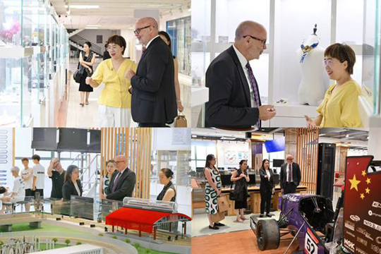 麥考瑞大學代表團還參觀了廣州城市理工學院珠寶學院和綠智汽車與交通現代技術實驗室,欣賞了掐絲琺瑯與3D打印智能珠寶系列作品,并觀摩了學生在智能駕駛與軌道交通沙盤實踐教學區的模擬訓練,來賓充分肯定學校在校企合作、學生實踐等領域取得的諸多成果。