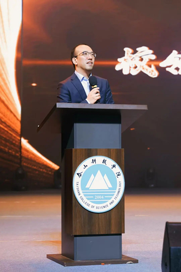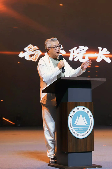 常務副校長謝承紅指出,小柯老師及其團隊將首個小柯劇場音樂劇學院(泰山科技學院)落戶泰山科技學院,是對學校的信任和厚愛。他向小柯老師及其團隊表達最崇高的敬意和感謝!謝承紅講到,源于董事長彭鴻斌博士的精準設計,近年來學校音樂劇教育事業蓬勃發展,一批原創高水平有影響的音樂劇作品持續浸潤和幫助著同學們成長,與小柯劇場的合作,是學校推進校企合作、產教融合戰略的關鍵一步,必將促進學校藝術教育和音樂劇教育里程碑式的發展。他期待大家共同努力,將小柯劇場音樂劇學院(泰山科技學院)打造成最實戰、最引領、最暖心的音樂劇學院。