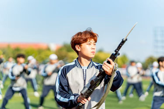 伴隨著激昂的旋律,分列式表演方陣率先向運動場中央進發,口號洪亮震徹全場,隊列行進間步伐統一、動作規范,淋漓盡致地展現出新生們紀律嚴明的優良作風;旗語方陣的同學們揮舞著紅黃旗幟,手臂舒展間,“無聲的信號”準確傳遞,颯爽的姿態成為場上一道靈動的風景;刺殺操方陣的同學們手持鋼槍,一擊一打,一步一踏,靈活自如;應急棍方陣的表演堪稱力量與紀律的完美融合,同學們雙手握棍,劈、掃、戳、擋等動作整齊劃一,每一個姿態都挺拔堅毅;警棍盾牌方陣緊接著亮相,同學們左盾右棍,盾擋穩固、棍擊迅猛,連貫攻防伴著整齊步伐,將器械配合的默契與戰術素養展現無余;教官戰術表演壓軸出場,進攻、狙擊、反恐……招式精明,步履鏗鏘,“硝煙彌漫”中為現場師生帶來震撼的視覺盛宴。