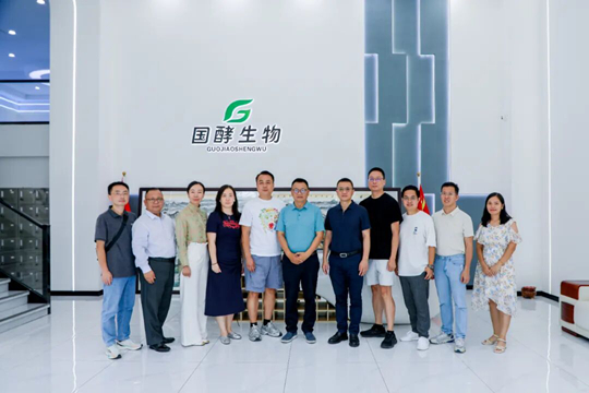 胡建波一行走訪梁華(左五)在佛山創立的國酵生物(廣東)有限公司