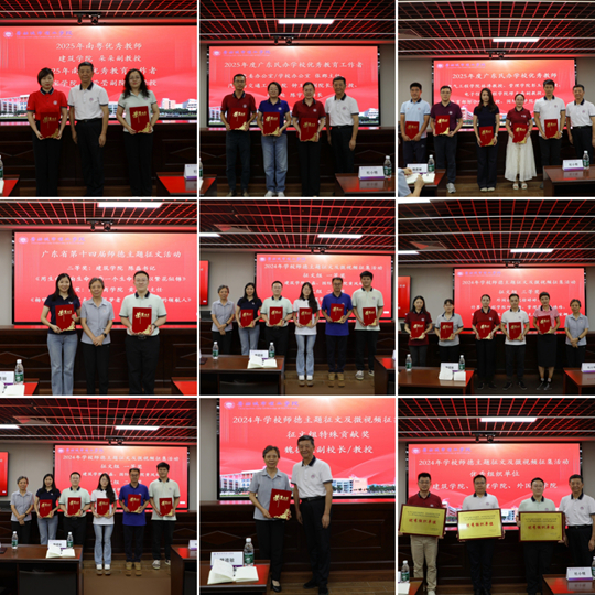 現場播放2024年學校師德主題征文及微視頻征集活動微視頻組一等獎作品,以鮮活影像生動呈現學校教師立德修身、潛心育人的精神風貌。隨后,黨委教師工作部副處長胡杜澤主持并通報獲獎情況,學校領導分別為2025年廣東省南粵優秀教師、南粵優秀教育工作者、廣東民辦學校優秀教師及優秀教育工作者、2024年師德主題教育月征文、微視頻省級及校級獲獎者頒發榮譽證書,以莊重儀式致敬教師群體的堅守與奉獻,傳遞學校對師德建設的高度重視。