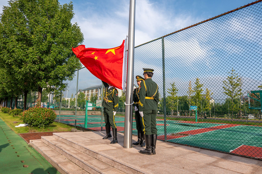 莊嚴(yán)的國(guó)歌聲響起,五星紅旗冉冉升起,全體師生肅立行注目禮。