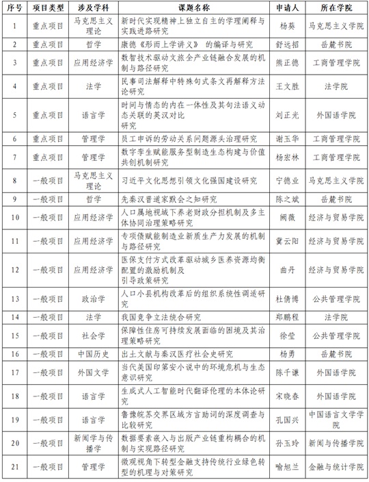 | 湖南大學(xué)立項(xiàng)39項(xiàng)國(guó)家社科基金年度項(xiàng)目 重點(diǎn)項(xiàng)目數(shù)量并列全國(guó)高校第二 |
