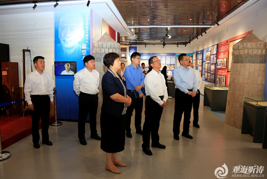 簽約儀式前,學校黨委常務副書記張靜陪同吉林大學一行參觀了校史館和海洋科技展廳。
