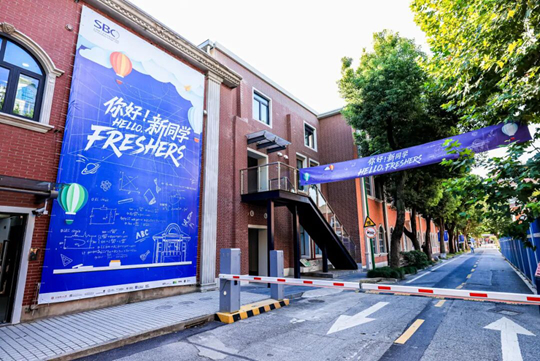 步入教學樓一樓大廳,印有“‘英’綻芳華,‘滬’創未來”主題的迎新展板便映入眼簾。這一主題寄托著對中英國際學院學子成長為卓越英才、在上海開創美好未來的殷切期望。