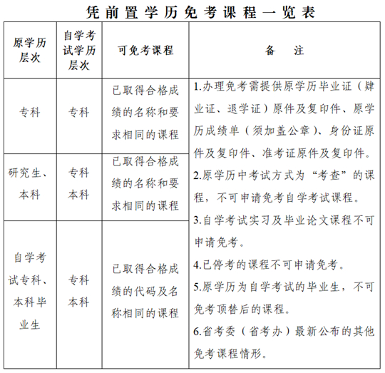 考生可憑上述前置學歷申請免考的自學考試課程如下: